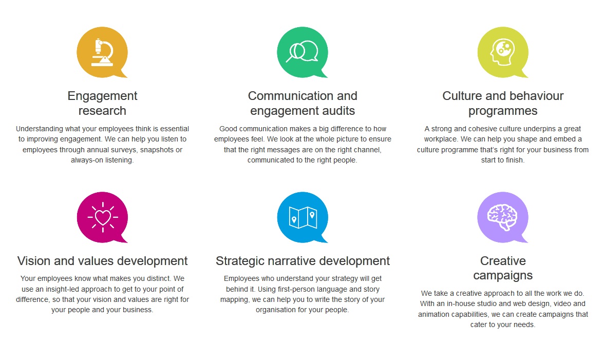 We are a full-service agency providing the employee insight to inform the right engagement strategy and action. Working as partners, we help shape the right solutions which align to a client’s business strategy and priorities.